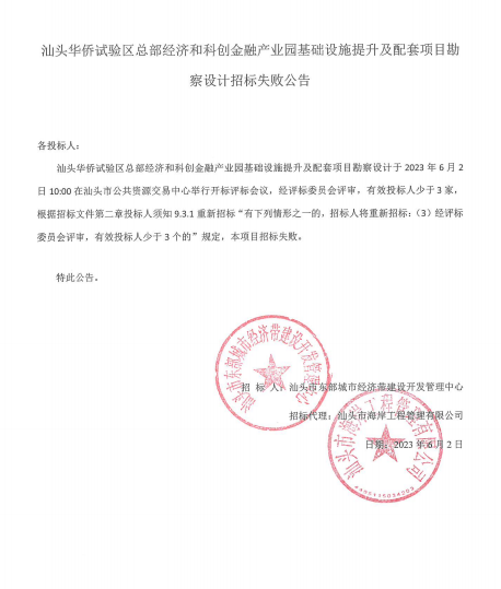 汕頭華僑試驗(yàn)區(qū)總部經(jīng)濟(jì)和科創(chuàng)金融產(chǎn)業(yè)園基礎(chǔ)設(shè)施提升及配套項(xiàng)目勘察設(shè)計(jì)
