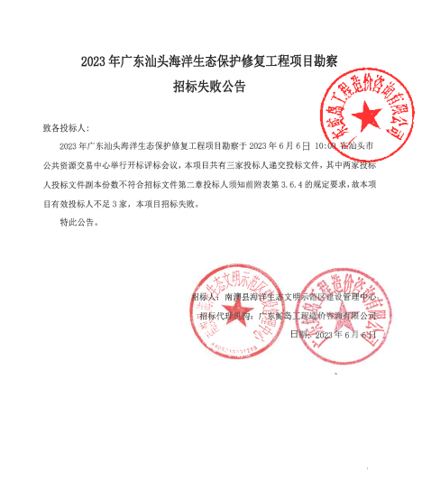 2023年廣東汕頭海洋生態(tài)保護(hù)修復(fù)工程項(xiàng)目勘察