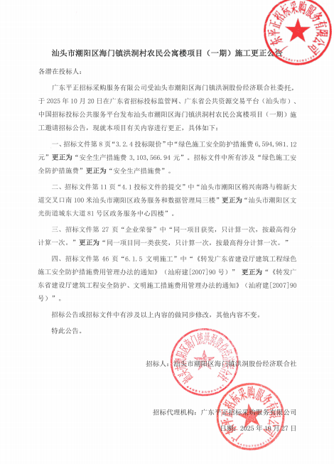 汕頭市潮陽區(qū)海門鎮(zhèn)洪洞村農(nóng)民公寓樓項目(一期)施工